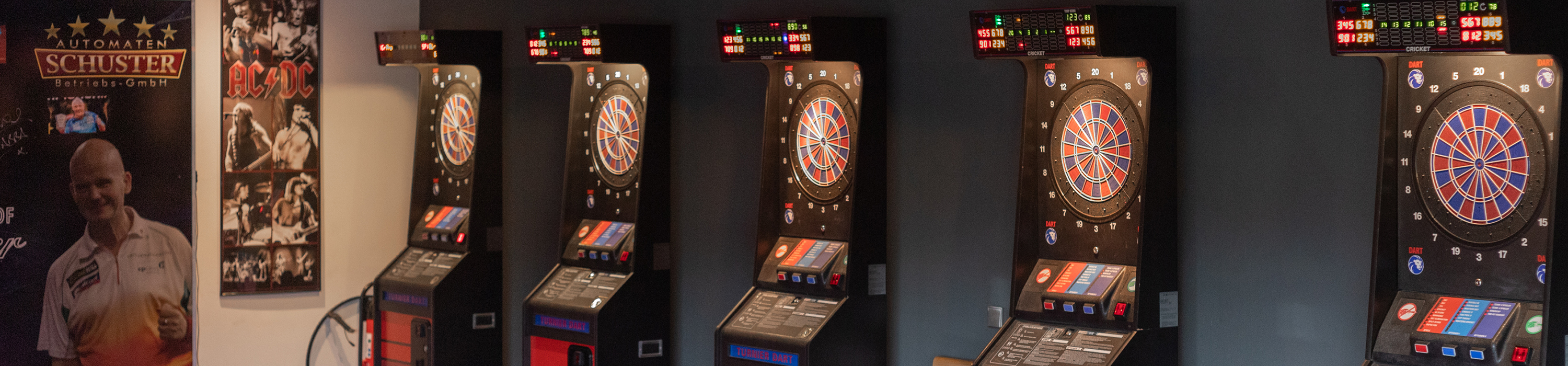 Acht E-Dart und eine Steeldart-Scheibe stehen Ihnen bei uns zur Verfügung. Mittlerweile sind bei uns mehrere Mannschaften im Ligabetrieb gemeldet. Gerne können Sie unseren Mannschaften bei einem Turnier Vorort zuschauen, oder Sie können außerhalb des Turniers selbst versuchen, ins „Schwarze“ zu treffen.